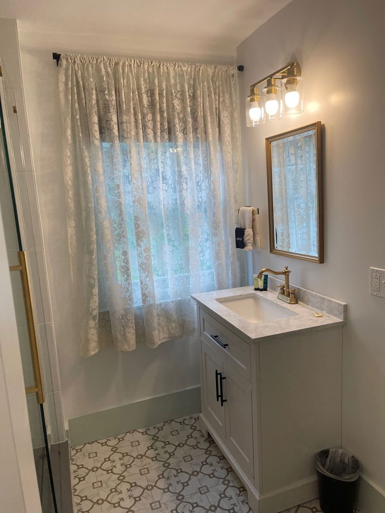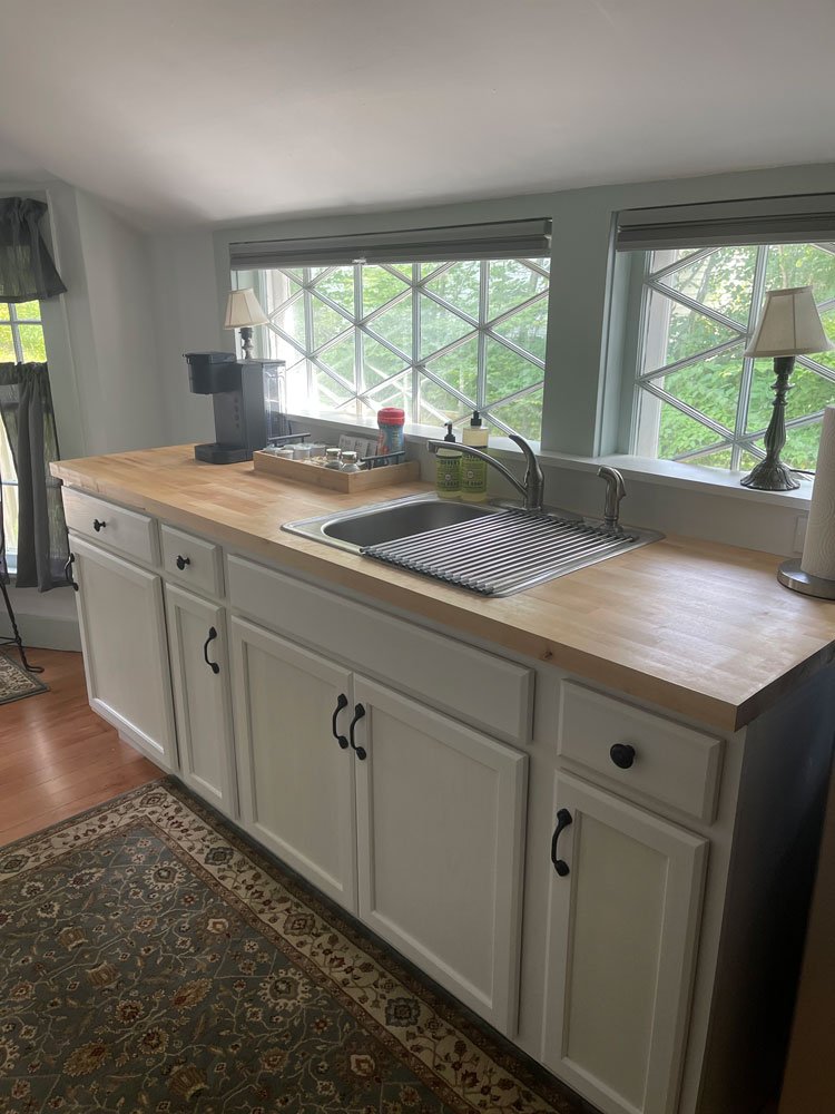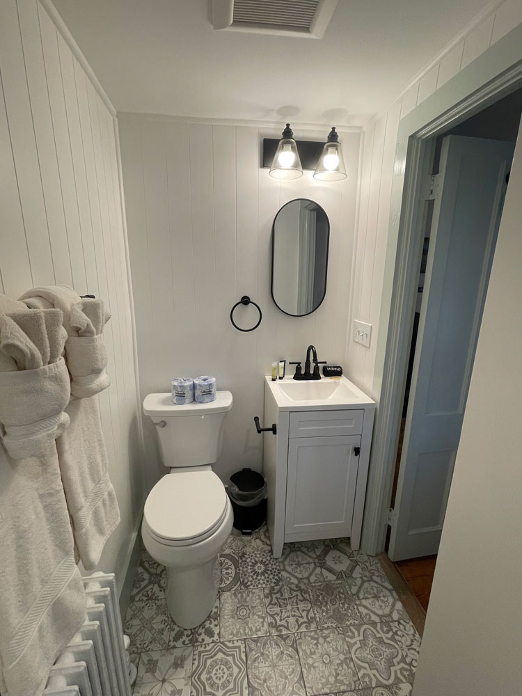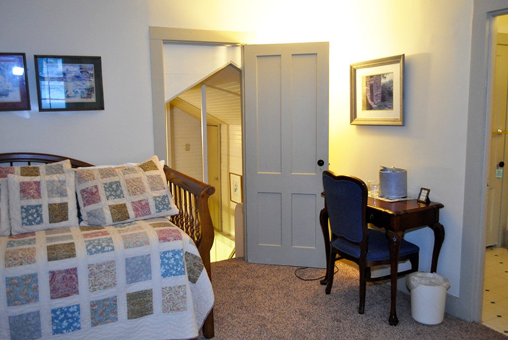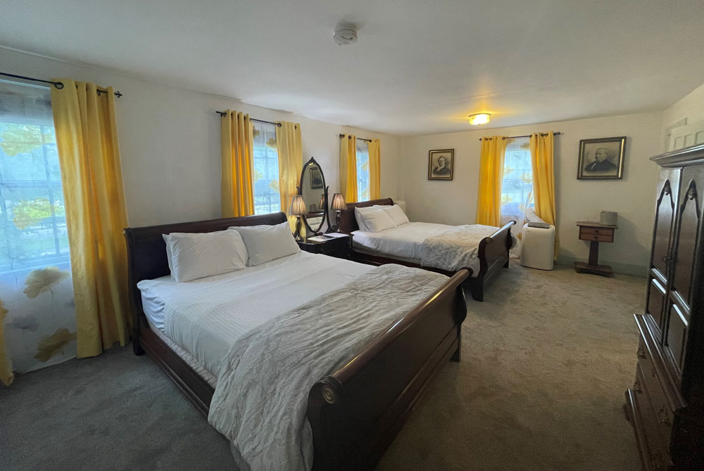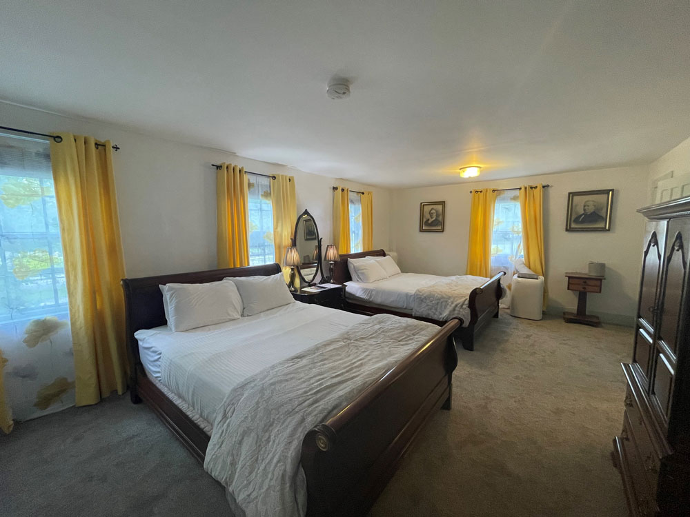 The rooms were converted to Inn rooms in 1996. Today, the house has six guest rooms, all with A/C, five have been newly renovated and offer beautiful tiled walk-in showers. The three first floor rooms, Sarah’s, Remember Bakers & Justin James all have a porch or patio. Second-floor rooms, off the front entrance, are Zadock Hard’s and Adelia’s rooms. Old Squires Gable is a suite of dormered rooms up the inside back staircase.