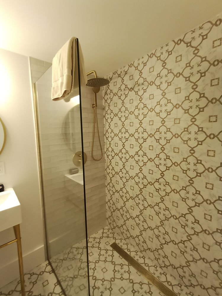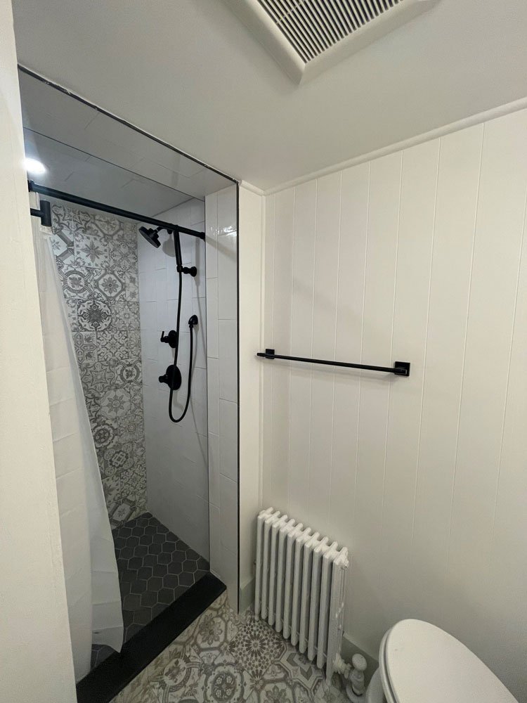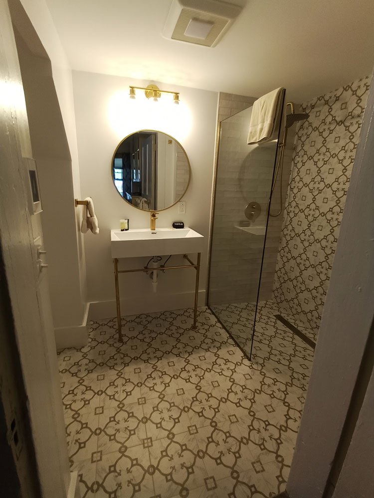 This newly remodeled room offers a Queen bed, hardwood floors and a walk-in tiled shower with radiant heated tiled floors.